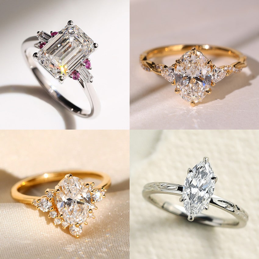 • Moissanite: Significantly cheaper, with 1-carat rings (including settings) often priced between $200-$500, just 1/5 to 1/2 the cost of lab diamonds.
